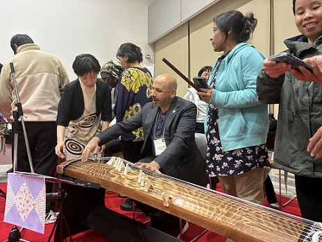 途中で、研修員が和楽器を演奏してみるコーナーあり。
