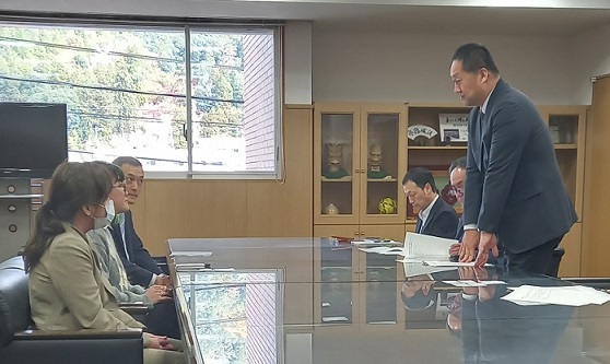 市長表敬後は、研修期間中の滞在先となる「神楽門前湯治村」へ移動しました。