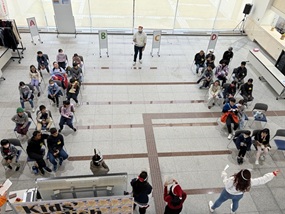 東広島市内の小学生56名が参加し、ひろしま国際プラザを英語圏の小学校に見立てて、外国の学校生活を体験しました。
