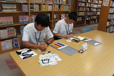 ひろしま国際プラザには図書室があり、その図書室の作業としてお願いしたのは「本のポップ作り」